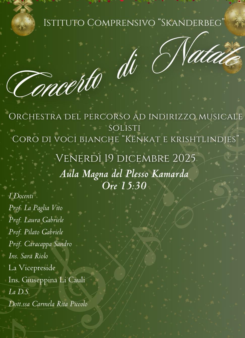 Quest’anno il nostro Istituto è lieto di invitarvi a ben 2 concerti, che si terranno presso l’Aula Magna del plesso Kamarda: martedì 16 dicembre alle ore 15.30 e venerdì 19 dicembre sempre allo stesso orario. Via aspettiamo numerosi!